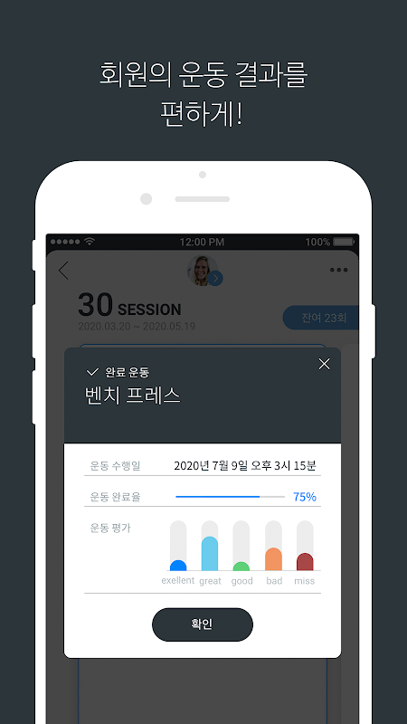 Virtual Mate Plus migliora la soddisfazione della classe fornendo automaticamente feedback sulla classe ai membri tramite l'app membro (myBenefit) collegata a Virtual Mate Plus e la comodità del trainer.