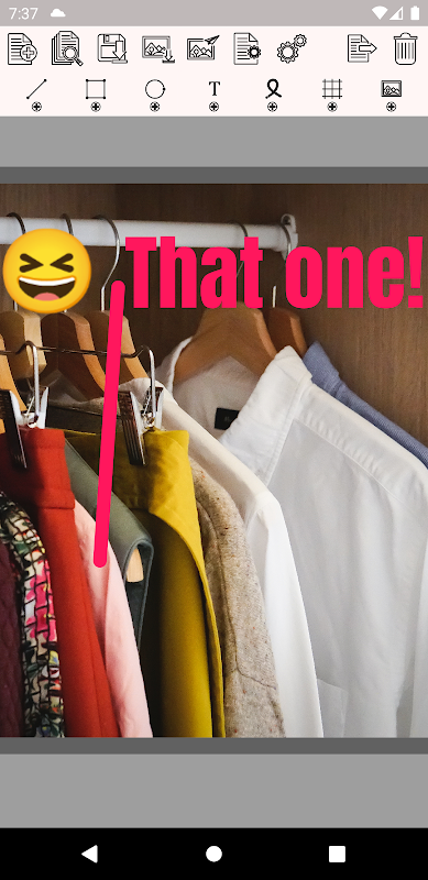 Our app made for you to add your text and marks to an image, so can you share it with others or save it for future self. But Visual Remarks can be also useful even for designs of simple logos on your portable device, our icon, for example, was designed within our app itself, and we are loving it.