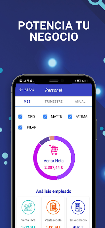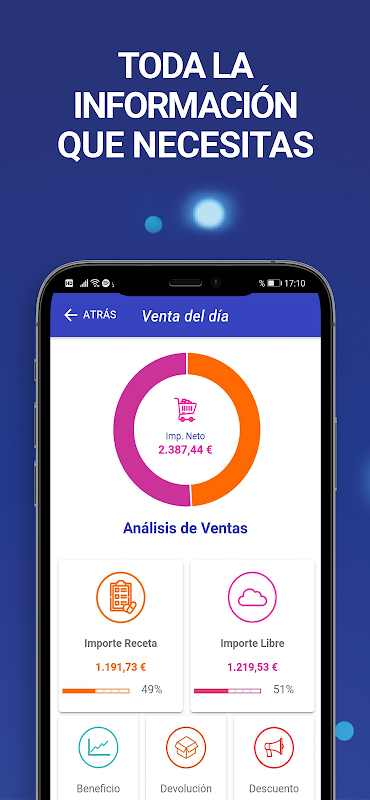 Con l'app ViTip sarai informato sulla gestione quotidiana della tua farmacia, fornisce dati su registratori di cassa, vendite, acquisti, magazzino e personale, nonché un'analisi dell'evoluzione della tua attività.