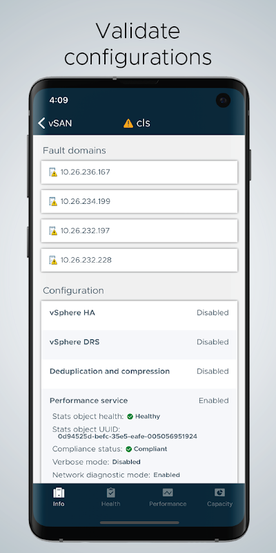 VMware vSAN Live fornisce agli utenti vSAN informazioni immediate sugli ambienti di infrastruttura iperconvergente dai loro dispositivi mobili. Invece di fermarsi, accedere a un laptop e quindi accedere in remoto per visualizzare i loro ambienti vSAN, gli utenti possono monitorare i loro cluster HCI mentre sono in viaggio, risolvere i problemi con pochi clic.