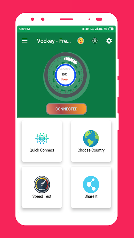 Vockey free vpn is a free vpn with high speed VPN proxy service. You can easily connect with another country by just a click, this vpn use encryption connection noone can track your activity.