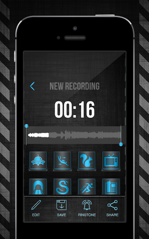Effettuare registrazioni impressionante con un registratore vocale digitale e redattore! Questo modulatore di applicazione vocale è un commutatore di voce con effetti per il canto, parlare o di qualsiasi altro tipo di registrazione! Registrare i suoni e poi modificarli tagliando loro lunghezza o applicando il cambio campo audio! Se avete bisogno di un cambio di vocale per le chiamate scherzo o un registratore vocale fantasma, questo registratore vocale gratuita sarà soddisfare i vostri desideri! Ottenere un registratore vocale di alta qualità ed editore, solo con l'installazione di Cambia Voce Con Gli Effetti applicazione!