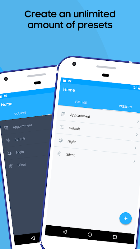 Volume Control rileva anche quando inserisci gli auricolari o attivi il Bluetooth, e passa automaticamente al tuo profilo volume preferito. Puoi persino creare delle impostazioni predefinite programmate automaticamente in base all'ora, alla posizione o a un evento del calendario.
