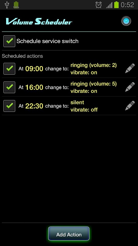 Volume di pianificazione è un facile da usare l'applicazione che cambia automaticamente lo stato squillare del telefono senza