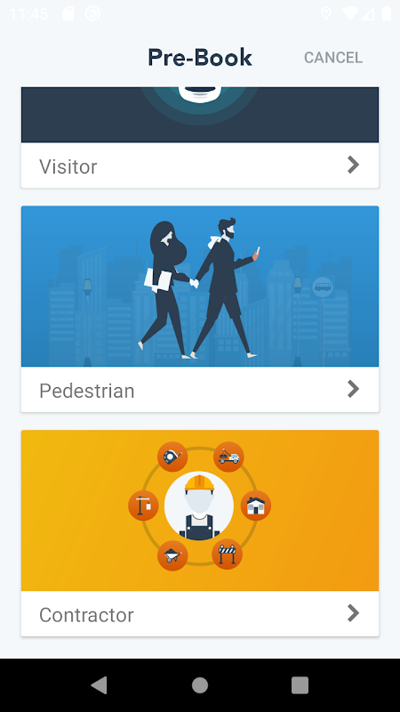Vox VMS app per residenti. Una volta registrati, i residenti possono invitare i visitatori a utilizzare i loro contatti sul telefono. L'app fornisce la funzionalità per inviare inviti via SMS o WhatsApp.