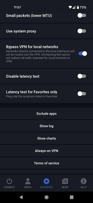 Il client VPN.AC per Android crittografa tutto il traffico mobile utilizzando la crittografia a curva ellittica all'avanguardia e le crittografie AES GCM.