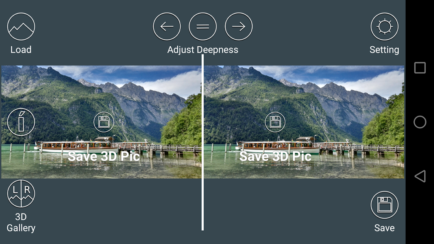VR 2D3D Converter Free offers you the easy way to convert 2D pictures from your phone gallery to 3D SBS images, which you can watch in Virtual Reality devices(i.e. Google Cardboard, VR headsets) eventually on 3D TV.