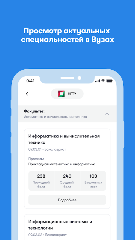 Наше приложение позволяет выбрать специальность и вуз, сохранить результаты, оценить свои шансы на поступление и выстроить свою стратегию.