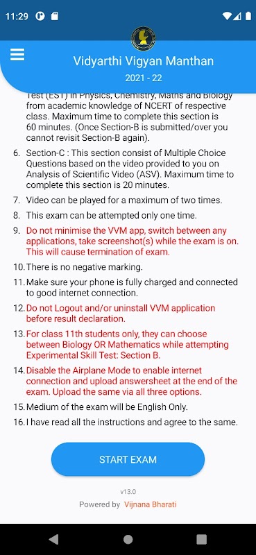 Applicazione ufficiale del campo nazionale Vidyarthi Vigyan Manthan 2020-21