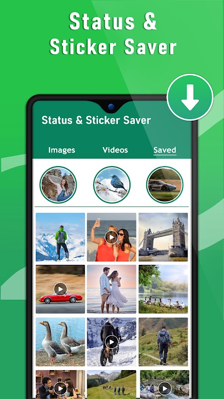 L'app Status Saver e Sticker Saver ti consente di scaricare GIF, video e foto per le ultime funzionalità di stato delle app, WA 2024 Story.