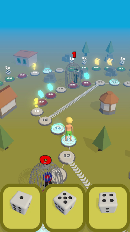 Popular board game in 3d format. Roll the dice, walk around the cells, overtake rivals