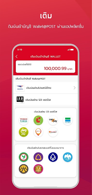 Nuovo sistema e-wallet che fornisce la moneta elettronica che potrebbe essere speso sulle transazioni digitali o sistema online per i clienti Thailandia postali da applicazioni mobile.