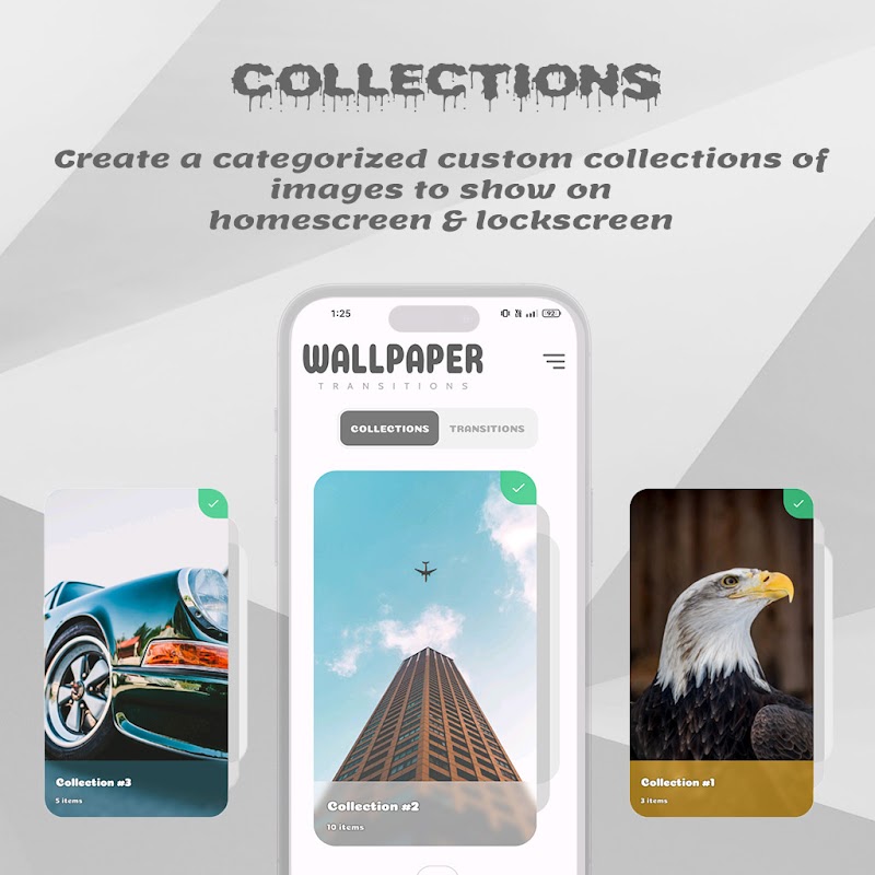 L'app Wallpaper Transitions ti consente di selezionare le immagini che desideri visualizzare come sfondi in base alle tue preferenze personali e di creare raccolte categorizzate. Dopo aver creato una o più raccolte, non è necessario applicare manualmente gli sfondi dalla galleria: l'app cambierà in modo casuale o sequenziale gli sfondi della schermata iniziale e di blocco con effetti di transizione. Puoi contrassegnare una raccolta come inattiva per impedire la visualizzazione degli sfondi.