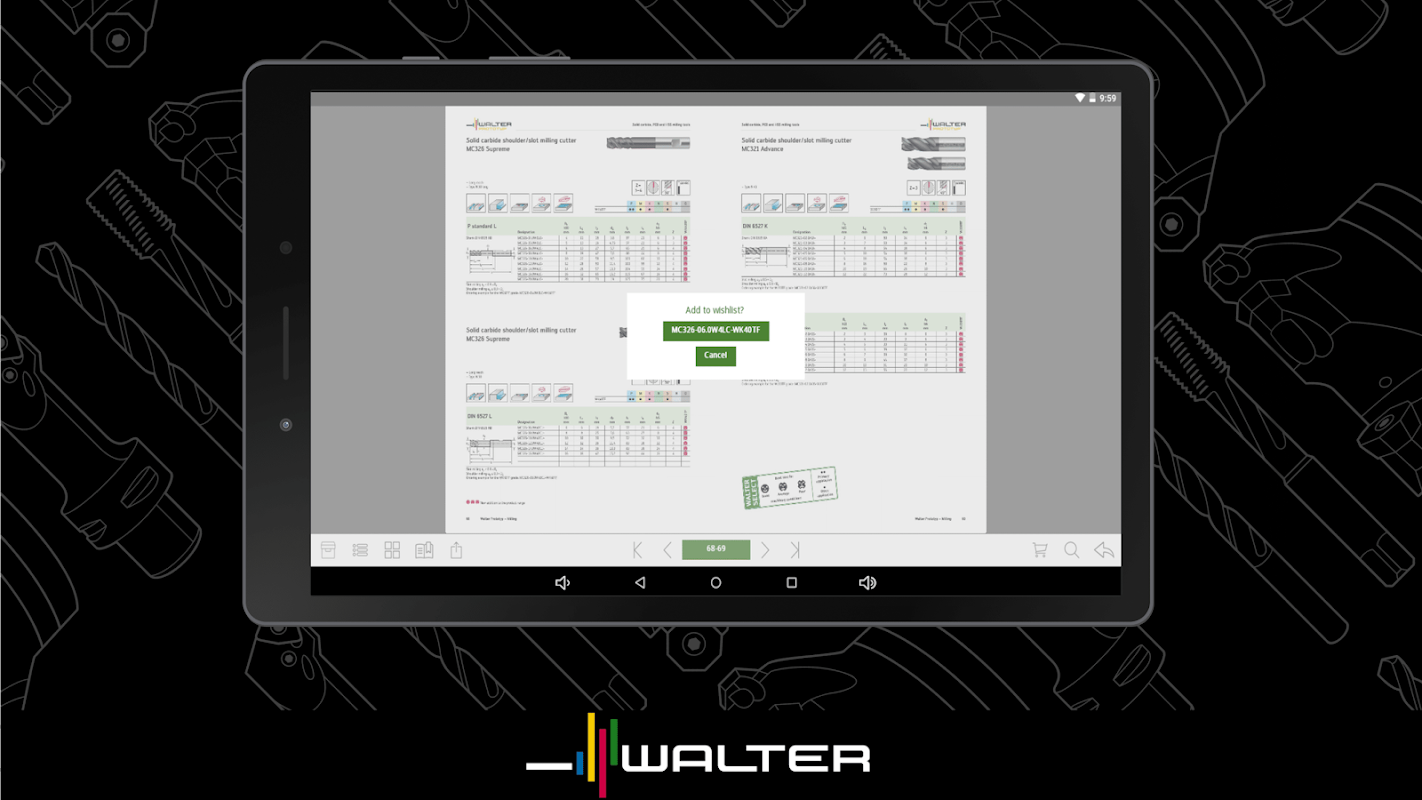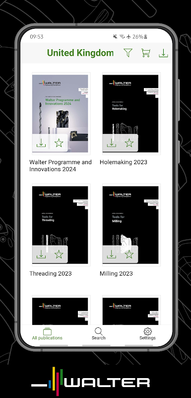 Il Walter e-Library applicazione fornisce un accesso rapido e interattivo per il supporto di stampa digitale del Walter AG in tutto il mondo: dal Catalogo Generale con oltre 49.000 prodotti dal Walter, Walter Titex e Walter Prototyp marche di competenza, per Cataloghi supplementari e brochure selezionati - tutti disponibile in 17 lingue, ovunque ci si trovi, quando ne hai bisogno.