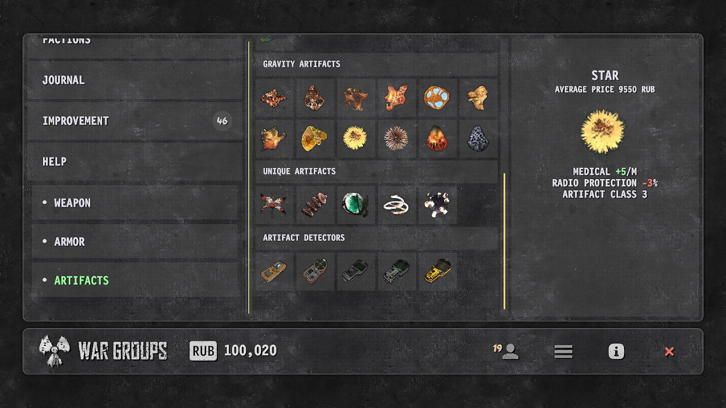 ☢️ Armi e manufatti: trova oggetti e manufatti unici per aiutarti a sopravvivere in questo mondo pericoloso. Ogni artefatto ha proprietà speciali, proprio come in Stalker.
