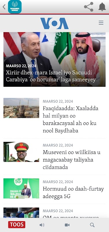 - ** Ogeysiisyada Wararka Breaking News:** Hel ogeysiisyo degdeg ah oo ku saabsan wararka jebinta wararka iyo wararka muhiimka ah, adiga oo kula socodsiinaya meel kasta oo aad joogto.
