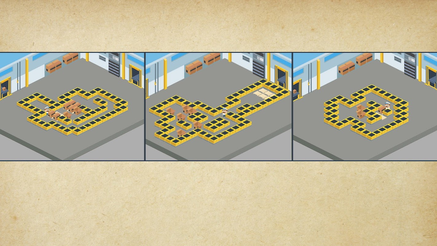 Un uomo senza la sensazione di stanchezza, il nostro magazziniere è pronto a servire 24 ore su 24, 7 giorni su 7, che ama molto il suo lavoro. Ha solo bisogno di una guida per imballare e ordinare i pacchi; tuttavia potrebbe essere piuttosto un enigma risolvere tutti questi pacchetti.