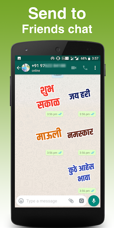 L'app WaStickers Marathi Text Stickers contiene una varietà di adesivi di testo Marathi come saluti, festival, parole divertenti.