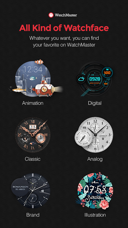Our application contains a marvelous collection of watchfaces(watch backgrounds) crafted by our finest and certified global designers.