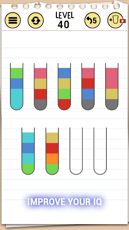 💧 La regola è che puoi versare l'acqua solo se è legata allo stesso colore e c'è abbastanza spazio sulla bottiglia.