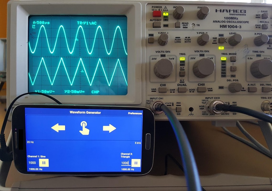 This is a waveform generator app for Android, capable of producing four different functions: Sine, square, triangle and sawtooth.