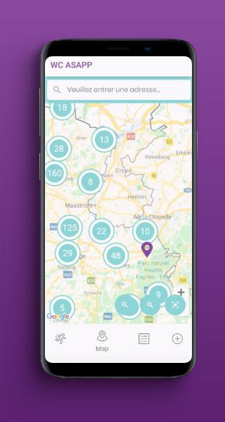 WC ASAPP is een app met geo-lokalisatie die mensen helpt om een toilet te vinden dicht in hun buurt. Algemene informatie over deze toiletten (afstand, score, openingstijden, hygiënisch niveau, kosten, enz...) wordt ook gegeven. De app brengt u automatisch naar het toilet van uw keuze. Gebruikers worden uitgenodigd om de toiletten te beoordelen, nieuwe toiletten toevoegen kan ook. Via crowdsourcing zal de app meer en meer toiletten bevatten met nuttige informatie. Download hem nu en sluit u aan bij de gemeenschap!