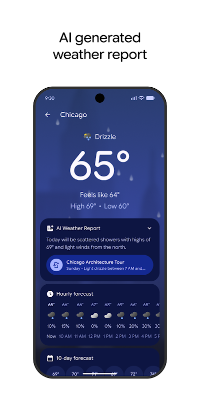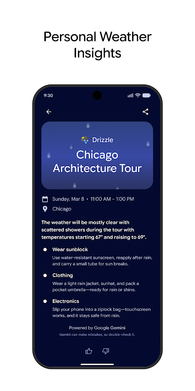 • Visualizzare overview del meteo create con l'AI con suggerimenti utili