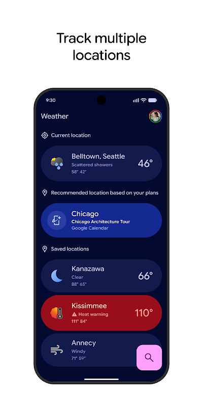 Ricevi le previsioni più recenti con l'esclusiva app Meteo di Pixel. Puoi anche: