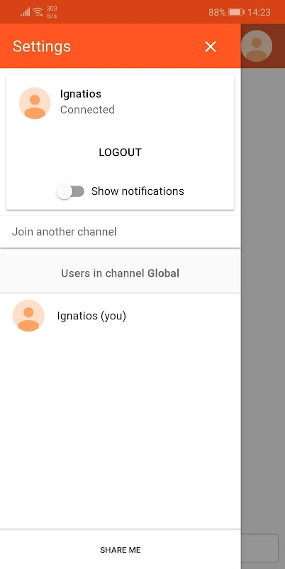 Dopo aver scelto un nome utente, ti unisci automaticamente al canale pubblico globale. Puoi quindi passare a un canale privato e invitare altri a unirsi a te.
