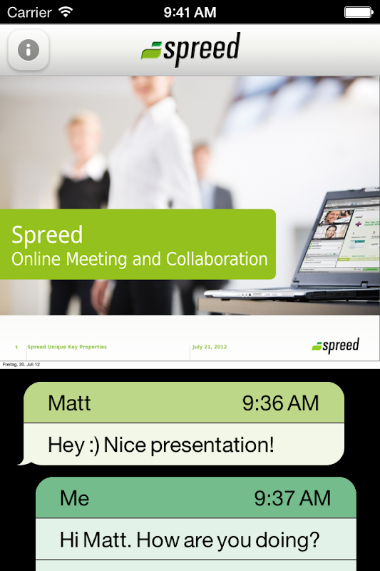With Webinar you can easily attend Spreed online meetings and telephone conference calls and keep track of meeting invitations.