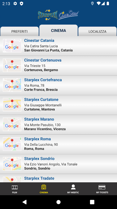 Acquisto e prenotazione dei cinema Starplex e Cinestar