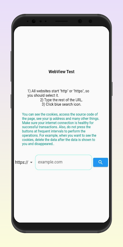 Testare siti web in WebView: inserisci qualsiasi URL e visualizza il sito web in formato WebView.