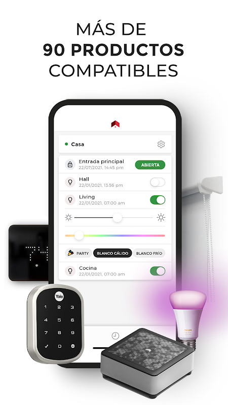Compatibile con più di 90 prodotti zigbee, gestisci luci, serrature, termostati, sensori, sirene e tapparelle comodamente dalla nostra app.
