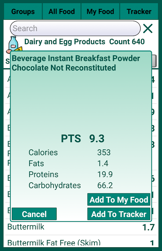 With this application, you can determine the "value" of a product, save favorite products and use it to calculate the total points you consumed during the day.