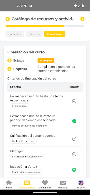 Continua ad apprendere in qualsiasi momento! Accedi a tutti i contenuti sulla tua piattaforma Interno. Visualizza i contenuti del corso, le attività, i voti, i partecipanti, la community, i messaggi e altro ancora.