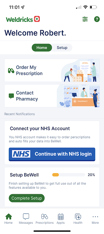 NHS Ripetere l'ordinazione di prescrizioni e i servizi sanitari dalla Weldricks Pharmacy.