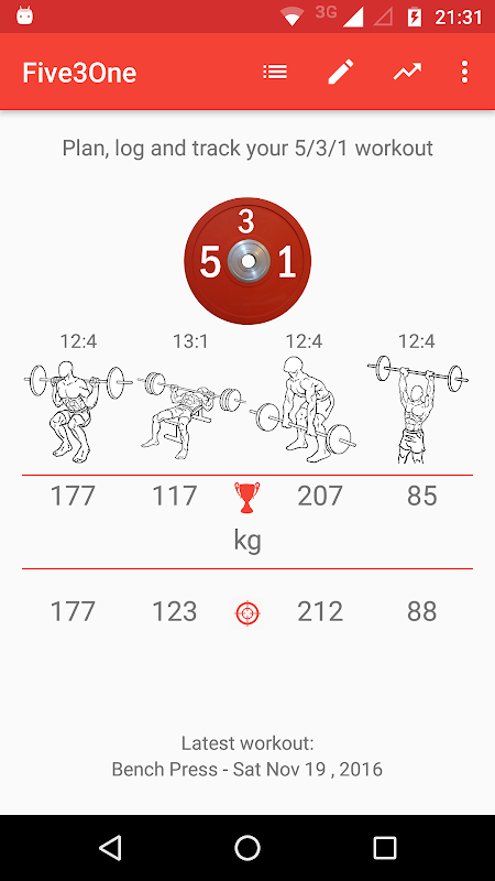 Questa applicazione consente di pianificare, registrare e monitorare il programma di allenamento Jim Wendler 5 3 1.