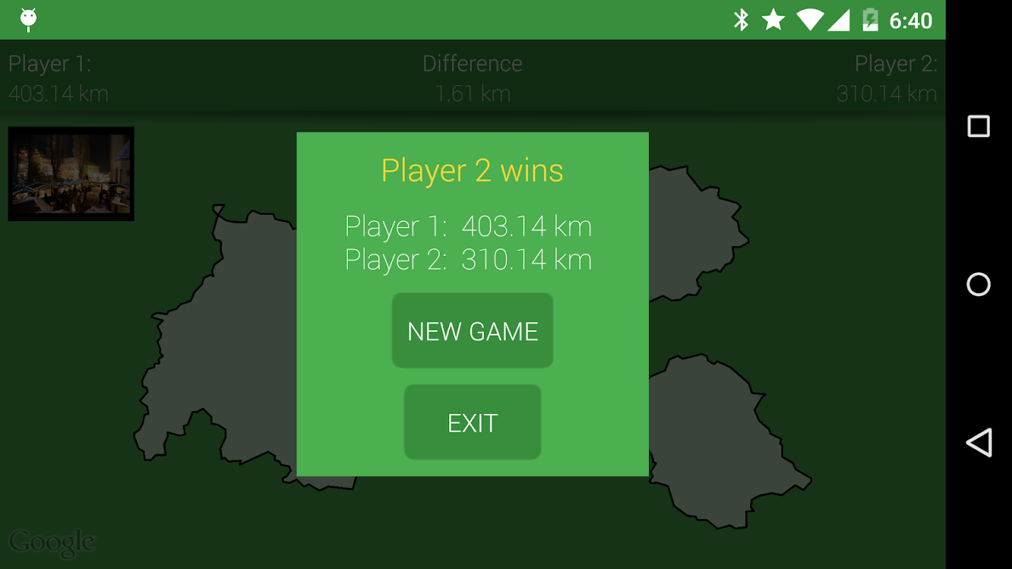 The game is as simple as that: A Point from different categories is given and by tapping on the map you define your solution. One more click is enough to show the right solution and the distance to it.
