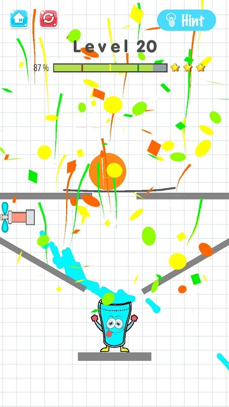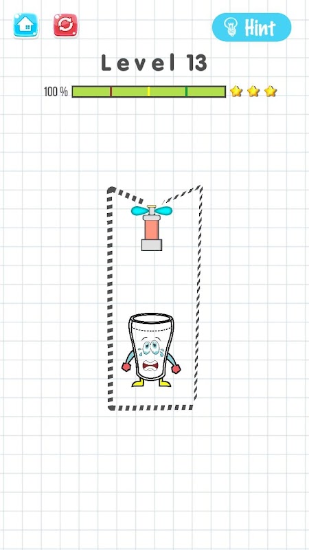 The glass is sad because it's empty. Your job is to draw a weave the line to make the glass filled up with liquid and smile again! Draw ultra sharp lines freely to complete levels, you will need your wisdom and imagination.