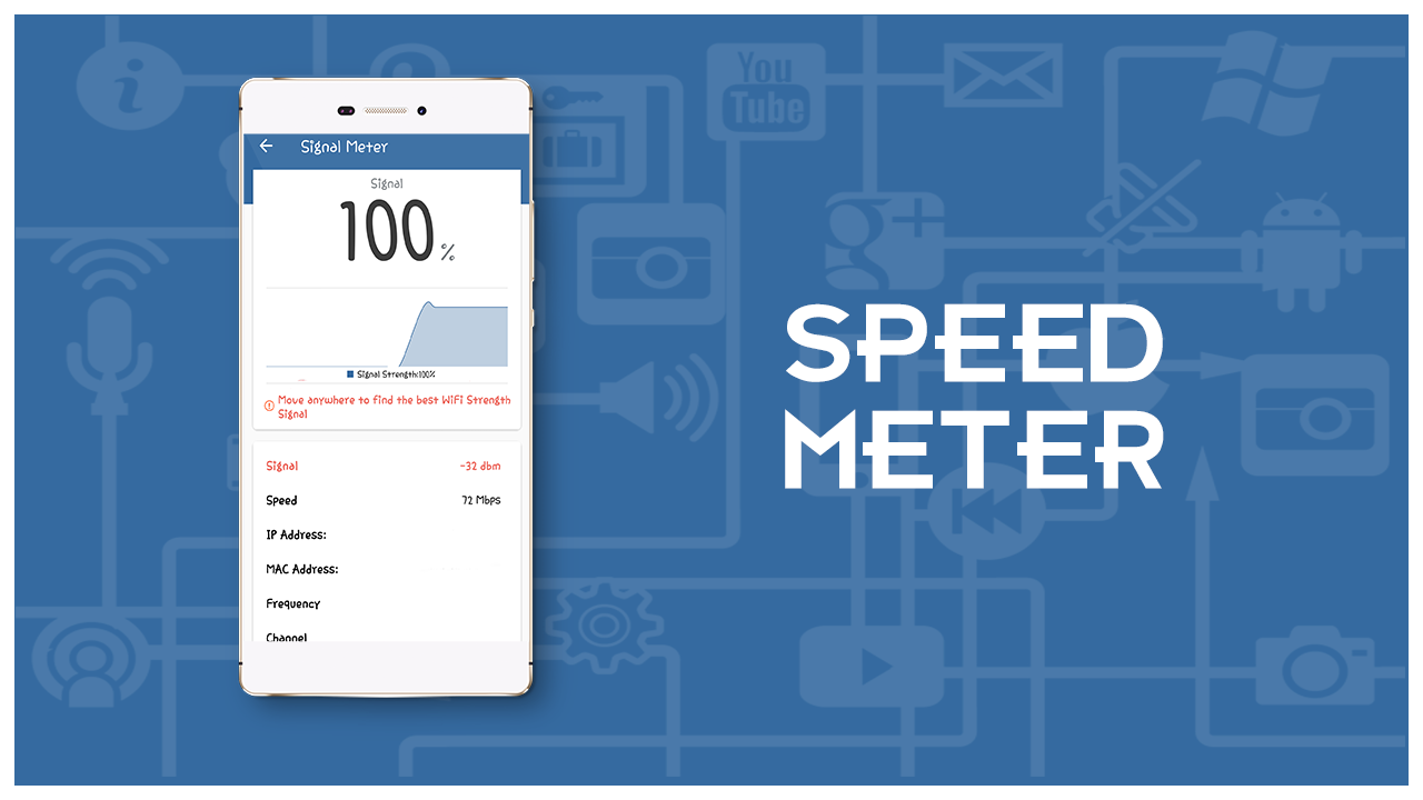 Test di velocità Wi-Fi: Internet Meter Signal Analyzer è la nuova app per forse tutti gli utenti che utilizzano la funzione Internet in quanto questa applicazione aiuta gli utenti a determinare qual è esattamente la forza della loro connessione Internet / WiFi. Questa applicazione è progettata come uno strumento di test della velocità che fornisce tutti i dettagli possibili sulla tua connessione Internet / WiFi. L'applicazione è uno strumento che non richiede assolutamente risorse, quindi non influirà sulle prestazioni del tuo dispositivo smartphone. L'utente può utilizzare questa applicazione e ottenere le statistiche complete sulla situazione attuale. L'applicazione fornisce informazioni e linee guida che aiutano l'utente in tutti i modi possibili. L'applicazione è molto efficiente e non richiede risorse che non influiranno sulle prestazioni del tuo dispositivo Android. Verifica la velocità di Internet e WIFI. Aiuta ad acquisire esattamente la velocità di ping, download e upload e garantire la sicurezza della rete degli hotspot Wi-Fi. L'applicazione fornisce l'indirizzo IP Indirizzo Mac upload e velocità di download della connessione Internet.