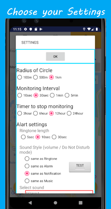 Se l'interruttore di monitoraggio è su ON e ti sei spostato nella cerchia della mappa, questa app ti notificherà di fare il compito suonando e vibrando.