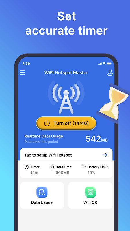 💡 Turn off time management: Set timer for your wifi hotspot. The free hotspot share will automatically be turned off when the timer runs out.