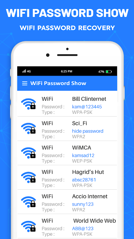 La funzione di recupero della chiave della password wifi ti aiuterà a recuperare la password mai persa delle reti WiFi che hai connesso almeno una volta al tuo dispositivo. Puoi trovare la password mai persa che hai perso o che non ricordi ora.