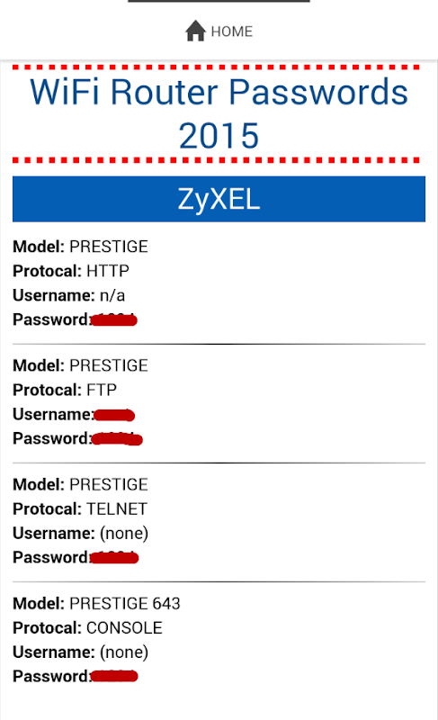 Quando si dimentica la password del router. Basta aprire questa applicazione, trovare il router di marca e selezionarlo. Will si mettono in modello di quella pagina del marchio e vedrete nome utente e la password del router wifi gratuito per ogni modello.