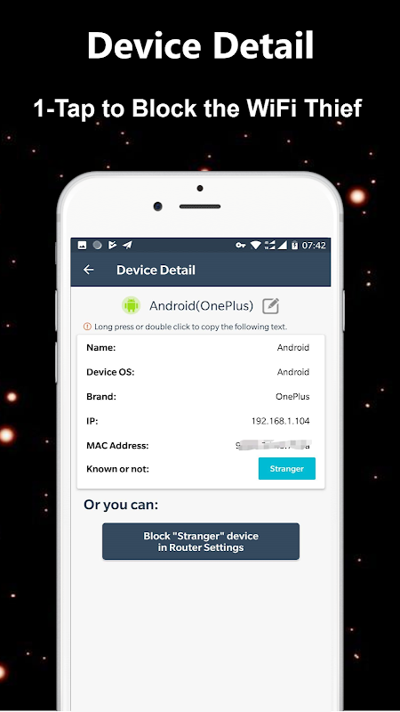 Utilizzando l'app di rilevamento Who is on My WiFi, in pochi secondi sai quanti dispositivi sono collegati al tuo router wireless con IP, MAC e elenco dei fornitori.