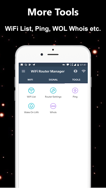 - More Tools such as WiFi List, Ping, whois, WOL etc.