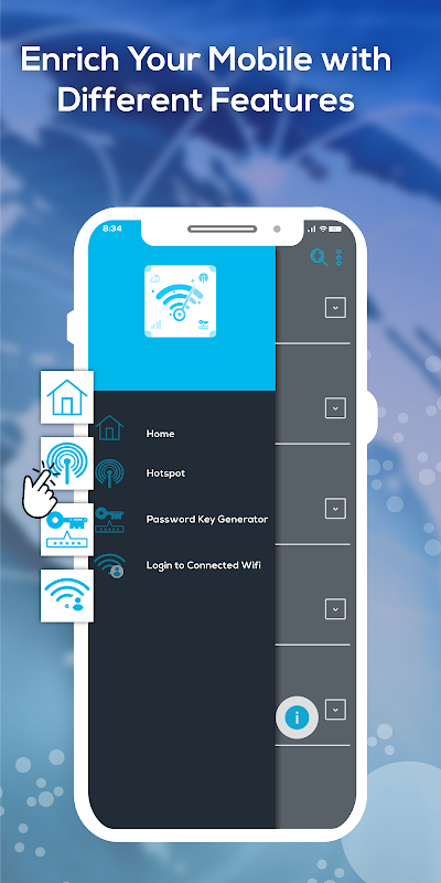 Crea hot spot WiFi da WiFi Password Key Master: condividi l'app WiFi Password se non riesci a trovare l'opzione per creare Hot spot dalle impostazioni del tuo telefono cellulare.