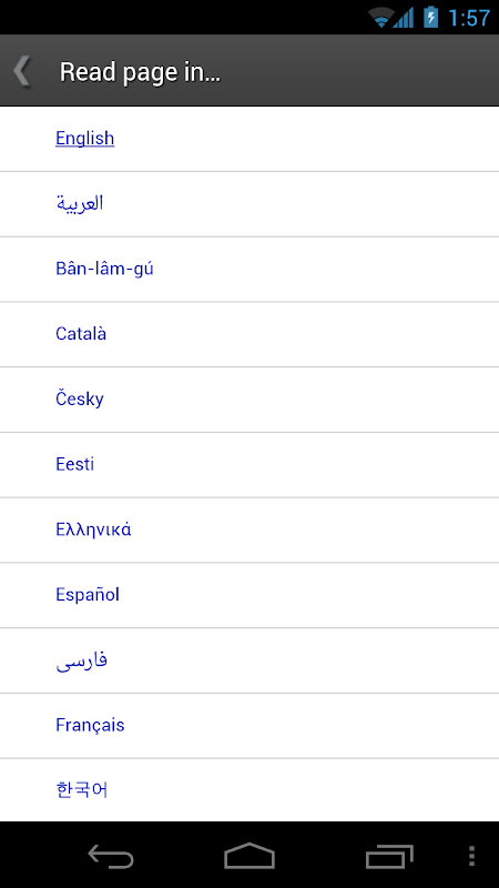 Features: Save article to read later or offline, Share articles using Android "Share" function, Read article in a different language, Listen to word pronunciations, Full screen search ... and more