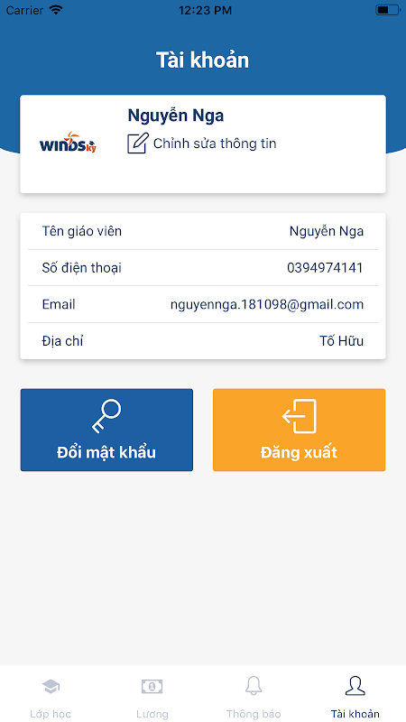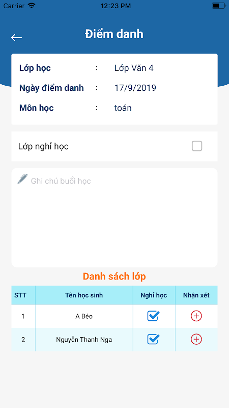 App Giáo viên dành cho trung tâm đào tạo.