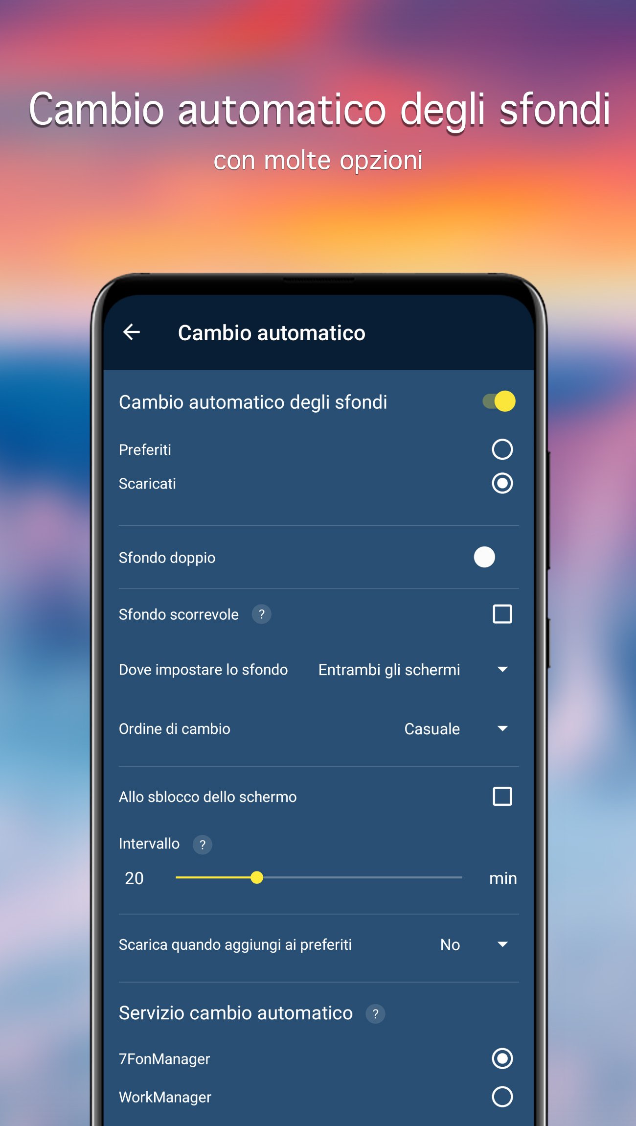 Attiva il cambio automatico dello sfondo in base a un programma, separatamente per schermata principale e di blocco.